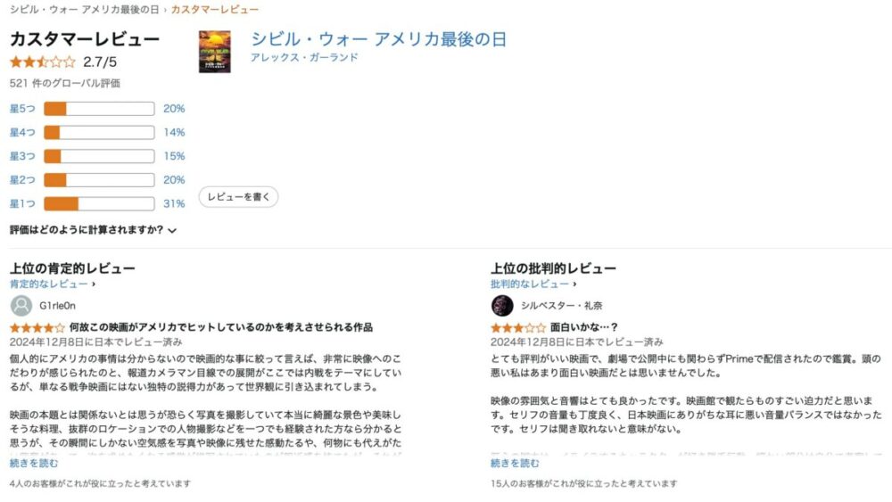 で、アマゾンプライムではかなり評価が低い様子…