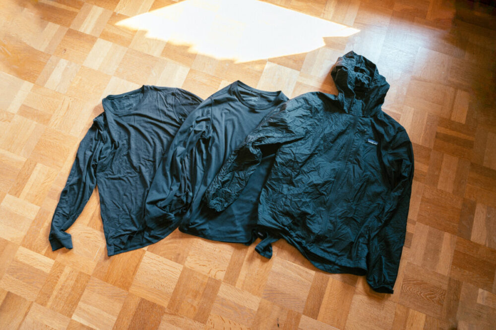 僕はパタゴニアの「ロングスリーブ・キャプリーン・クール・メリノ・ブレンド・シャツ」に「ロングスリーブ・キャプリーン・クール・ライトウェイト・シャツ」二枚を重ね、ベースレイヤーとしています。