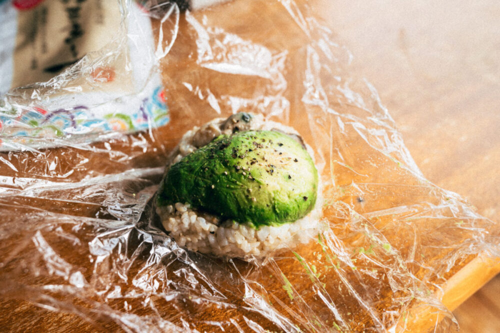 玄米アボカド牡蠣おにぎり。牡蠣は業務スーパーで購入した冷凍牡蠣をギーなどで焼いて、オリーブオイルで保存しておいたモノです。これがめちゃ旨い!